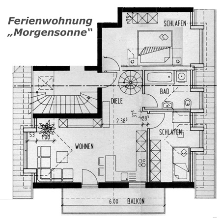 zusätzlich 1 offener Schlafraum mit Kuschelbett (1,40 m) in der Dachspitze + Schlafcouch im Wohnzimmer, alle Betten mit verstellbaren Lattenrosten und Kaltschaum-Matratzen.